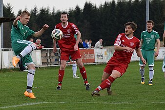 Im Duell der Verfolger behielt der SV Grafengehaig verdient die Oberhand. Durch diesen Sieg bauten die Platzherren ihre beeindruckende Serie aus und bleiben 2015 weiter ohne Niederlage. In einer intensiven Partie gingen die Grün-Weißen früh in Führung. Nach einer butterweichen Flanke von Max Hagen, nickte Krumpholz in gewohnter Manier ein (7.). Kurz danach streifte ein satter Linksschuss von Maximilian Hagen den rechten Pfosten. Peesten enttäuschte in Durchgang Eins und machte aus seiner Feldüberlegenheit wenig bis gar nichts. Die Grafengehaiger waren es, die immer wieder für Nadelstiche sorgten und durch Geier und Max Hagen per Freistoß zwei dicke Möglichkeiten verzeichnen konnten. Auch Krumpholz schrammte mit einem satten Fernschuss am 2:0 vorbei (36.). Etwas undurchsichtig die Situation kurz vor der Pause, als Michael Villa im Strafraum zu Fall kam. Der Schiedsrichter entschied zum Unmut der Gäste auf Strafstoß für Grafengehaig. Krumpholz verwandelte sicher, zudem musste Wolfgang Dippold mit der Ampelkarte vom Platz. Eine strittige Szene, die von beiden Mannschaften kaum zu beurteilen war. Nach dem Wechsel neutralisierten sich beide Teams nahezu. Die erste große Möglichkeit hatten aber wieder die Hausherren. Derjugin profitierte von einem Peestener Luftloch und hob den Ball über Braunersreuther. Der Ball ging am Tor vorbei und Derjugin kam zu Fall, auch hier hätte es Strafstoß für Grafengehaig geben können. Nach knapp einer Stunde der erste Torschuss für den SSV, als Goalgetter Markus Krauß aus halblinker Position zum Abschluss kam. Oelschlegel war Herr seiner Sinne und parierte. Auf der Gegenseite bewahrte Keeper Braunersreuther seine Elf vor einem schnellen K.O., als er zwei Mal in höchster Not klären konnte. 120 Sekunden später konnte auch der Peestner Schlussmann das 3:0 nicht mehr verhindern. Nach einem öffnenden Pass von Domi Hagen, gelang Krumpholz mit einem Traumtor die Vorentscheidung (62.). In den letzten 20 Minuten wusste der SVG das Ergebnis zu verwalten und ließ nichts mehr anbrennen. Bis auf einen kleinen Schönheitsfehler, den Ellner gekonnt vom Elfmeterpunkt nutzen konnte, passierte nicht mehr viel. In der Nachsspielzeit hämmerte der eingewechselte Jan Schmökel die Kugel aus gut 30 Metern noch gegen den Querbalken. Peesten enttäuschte bis auf die ersten 30 Minuten keineswegs und machte auch in Unterzahl eine gute Figur.