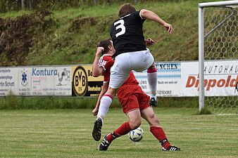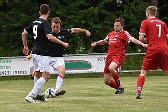 Nun riskierten die Einheimischen alles und Hohner rückte nach vorne. In der Schlussphase war die Gästeabwehr unsortiert und ein flach getretener Eckstoß landete direkt vor den Füßen von Buß(mann), der aus kürzester Distanz Hargens noch tunnelte und den vielumjubelten Ausgleich in der Nachspielzeit besorgte. In der 5. Minute der Nachspielzeit hatte erneut Buß die beste Chance doch noch den Sieg zu besorgen, scheiterte aber überhastet an einem Abwehrspieler. Insgesamt wäre der Sieg aber sehr schmeichelhaft gewesen, so dass man mit der Punkteteilung zufrieden sein muss angesichts des sehr späten Ausgleichs. Die Gäste können auf ihre Lebensversicherung Krauß bauen, der die wenigen sich bietenden Chancen eiskalt nutzte. Bei den Einheimischen stach insbesondere Spielertrainer Hohner heraus, der das Spiel an sich riss und wichtige Defensivzweikämpfe fast ausnahmslos für sich entschied. Nun müssen auch die übrigen SG-Spieler wieder an ihre Leistungsgrenze kommen, um Spiele in Zukunft siegreich gestalten zu können.