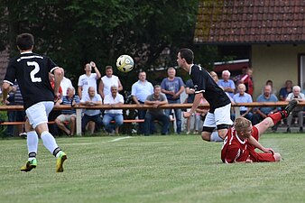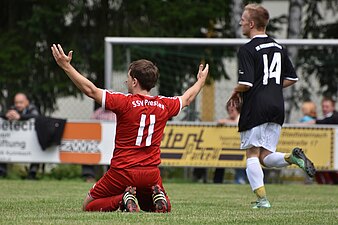 Die SG schien nun Überwasser zu bekommen und kontrollierte das Spielgeschehen. Dennoch blieben die Gäste in Person von Goalgetter Krauß stets gefährlich. Mit einem erneuten Konter gingen die Gäste abermals in Führung. Netzel setzte sich geschickt auf der Außenbahn durch und flankte butterweich auf Tormaschine Krauß, der gekonnt gegen die Laufrichtung des SG-Hüters einköpfte - ein herrlicher Kopfballtreffer. Kurz darauf bot sich Krauß, der kurz vor der Strafraumgrenze gelegt wurde, die Chance auf 1:3 zu erhöhen. Sein Freistoß wurde von der SG-Mauer diskutabel abgeblockt, doch der Referee entschied nicht auf Strafstoß und ließ das Spiel weiter laufen.