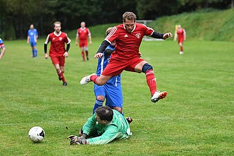 | Tore: | 0:1 Lewen Daniel. (4.), 1:1 Herrmann (6.), 1:2 Lewen Daniel. (27.), 1:3 Lewen Daniel. (30.), 1:4 Fels (37.), 2:4 Eigentor (62., Baum), 3:4 Bauernfeind (70., Baum), 3:5 Lewen Daniel. (72.) |
